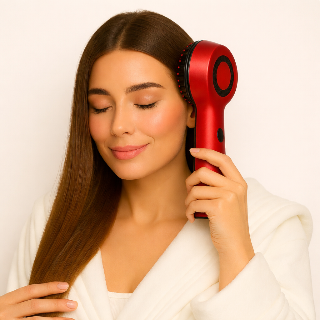 Use it for 5–10 minutes daily to stimulate growth, reduce shedding, and enhance shine and hair density.